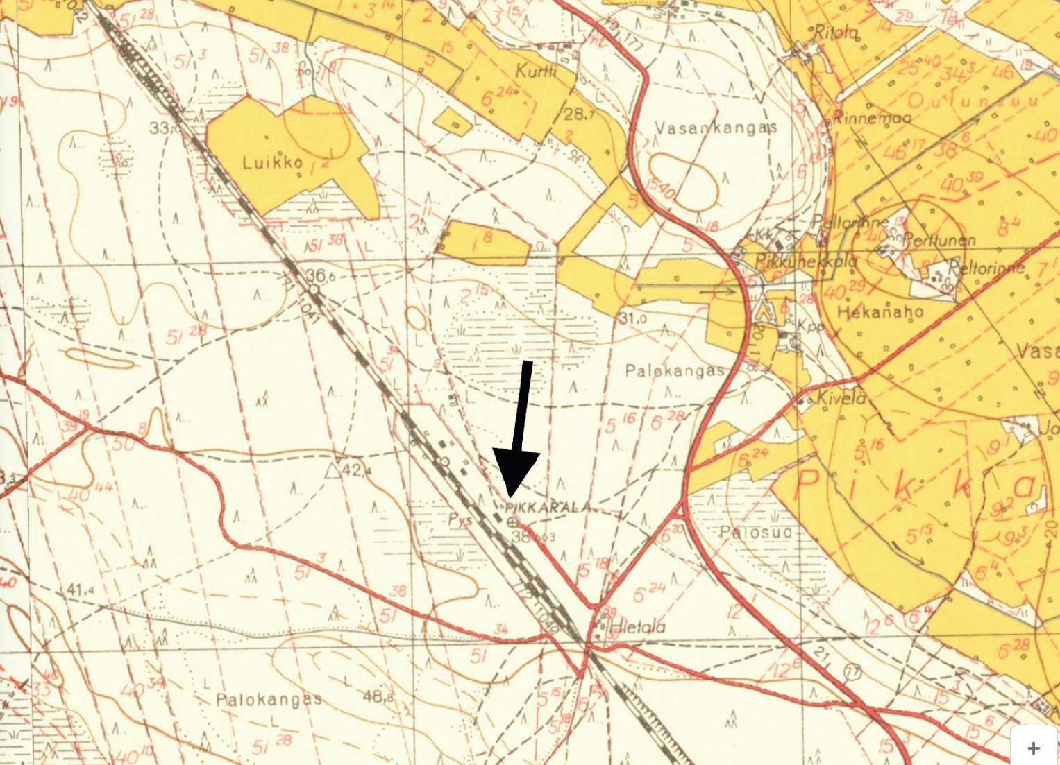 Risteyksessä Pukintie muuttuu Vasankankaantieksi. Samasta risteyksestä lähtee nykyään suora tie Sutelankankaalle, jossa Pikkaralan koulu aloitti toimintansa: